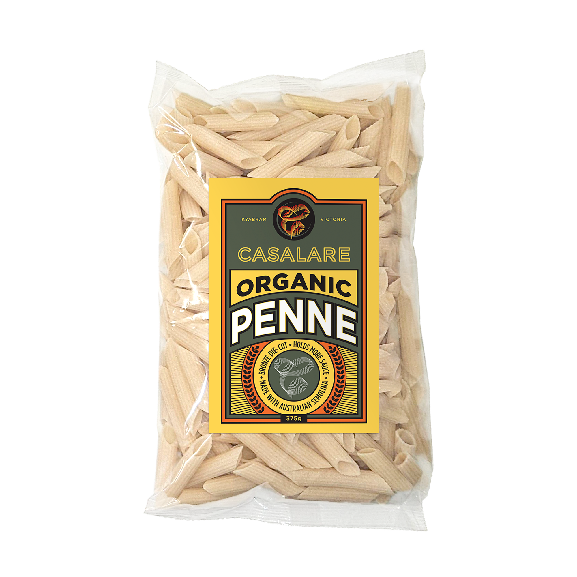 Casalare Organic Penne – Australian-made pasta crafted from 100% organic semolina, bronze extruded for authentic texture. Certified organic, vegan, and cooks in 11 minutes.