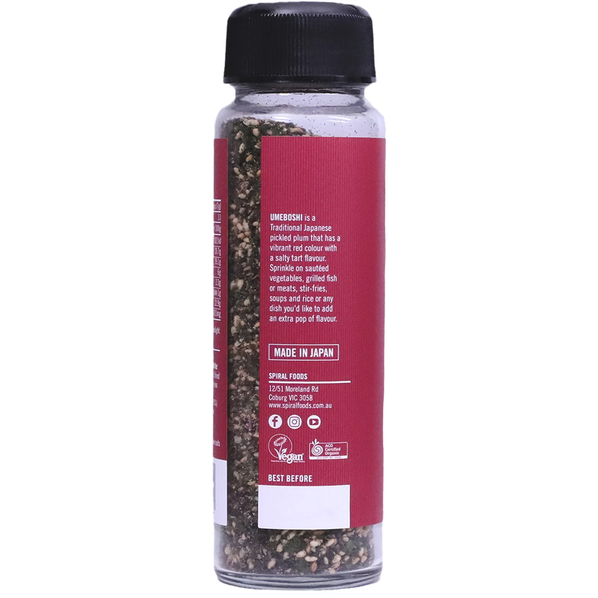+Organic toasted white and black sesame seeds, organic ground white and black sesame seeds, organic dried shiso flakes (organic shiso leaves, sea salt), green nori flakes, sea salt, organic dried umeboshi flakes 2.5% (organic ume plums, organic shiso leaves, sea salt).